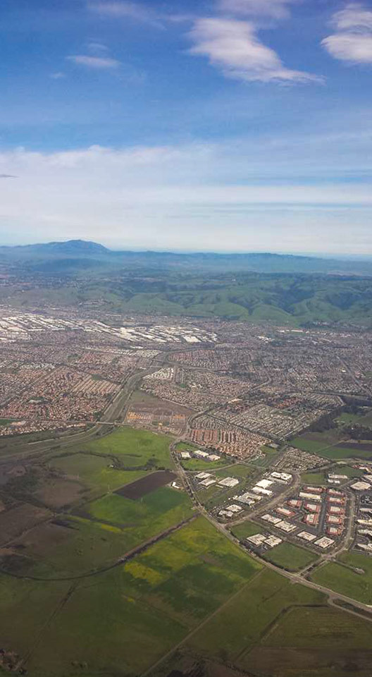 Provo, UT, US - Aug 14, 2020: Flying over Utah Lake, Orem, Provo, and the Wasatch Mountains