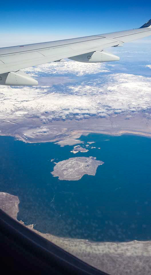 Salt Lake City, UT, US - Nov 1, 2017: Coming in to land over the Great Salt Lake